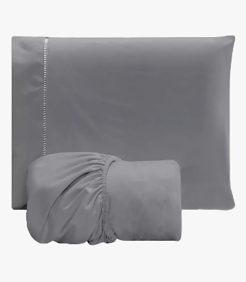 Jogo De Lençol Solteiro 2 Peças 400 Fios Ponto Palito Cor Cinza Tecido Liso